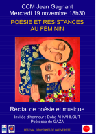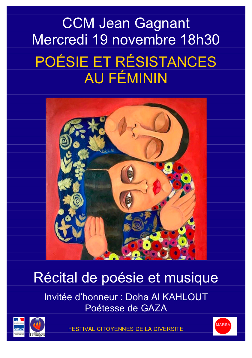 Marsa Publications Animations et la revue A organisent, le mercredi 19 novembre à 18h30 au CCM Jean Gagnant, un grand récital de poésie et musique "Poésie et résistances au féminin".